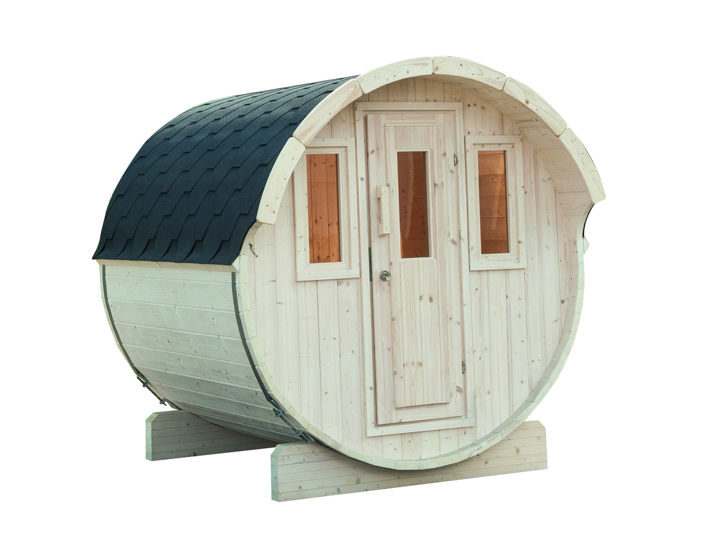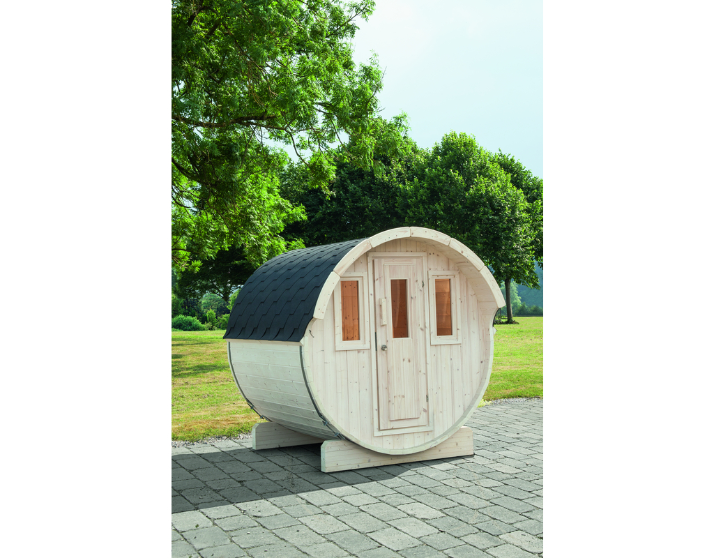 Mit dem Kauf einer Fasssauna erhalten Sie ein Stück Freiheit inklusive. Nichts hindert Sie, einen Saunagang zu erleben, wann immer Sie mögen. Das Saunafass Basic 230 kann mit einer Liegeflächenlänge von 190 cm aufwarten. Auf Bänken aus Erlenholz können Sie sich ganz entspannt zurücklehnen. Genießen Sie Ihre Ruhe in diesem schönen Saunafass. Genießen Sie Ihre Ruhe in diesem schönen Saunafass. – Durchmesser: 205 x 230 – Wandstärke Korpus: 42 mm – Wandstärke Front-/Rückwand: 28 mm – Liegefläche der Bänke: 190 cm – Leimholz-Einzeltür – Vordach: 27 cm – 2 Einzelfenster – inkl. schwarzer Dachschindeln – Lieferung als Bausatz